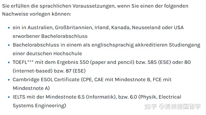 Computer Engineering专业更是有两种情况。如果有DSH证书雅思只需要5.0,没有DSH证书需要雅思6.5。