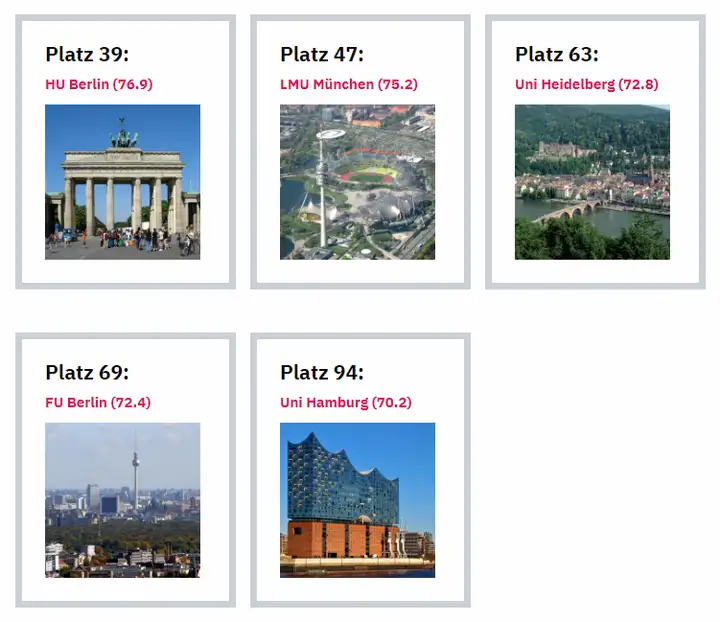 CHE 排名*可能是德国最全面、规模最大的大学和技术学院排名。该排名根据20多项标准对大学进行评估,包括一般学习状况、学习开始时的支持、教师的支持和考试准备。