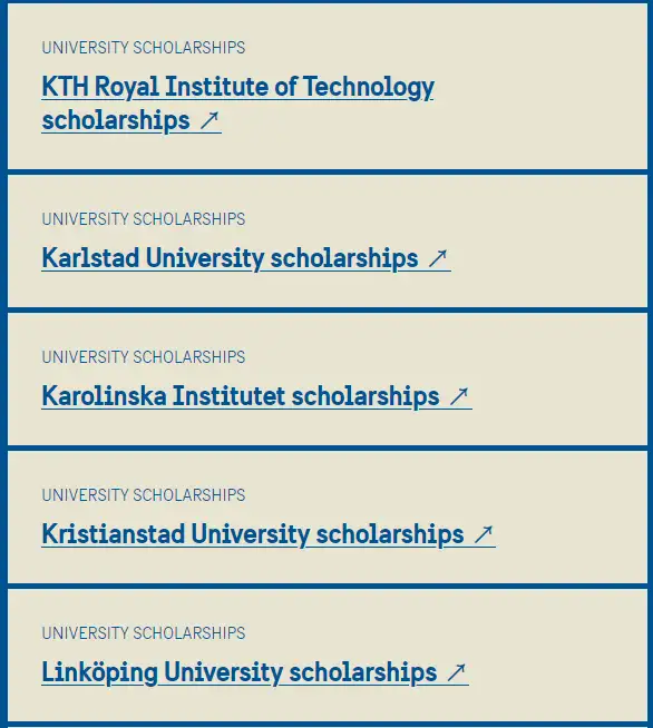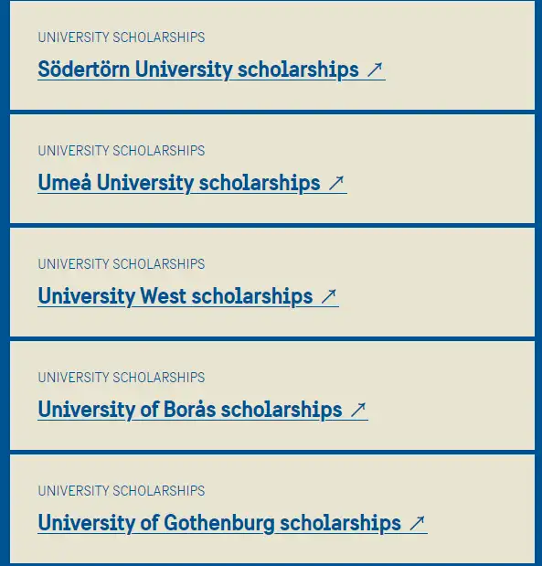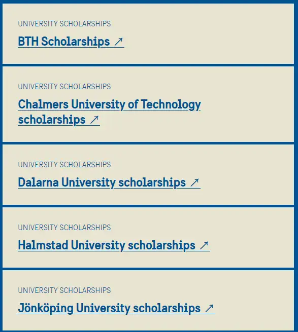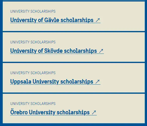 其中,大学奖学金是由各自大学提供的,相关瑞典院校如下: