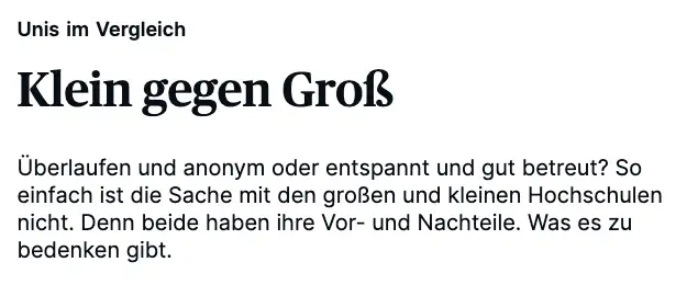 最近,在德国媒体上一个有趣的话题引发了很多德国人的探讨。那就是读大学到底是去一个大一点的学校好,还是去一个小一点的学校好呢?