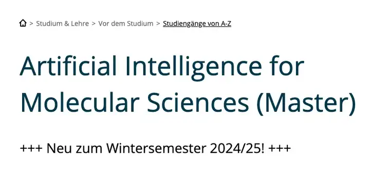 自今年慕尼黑工业大学开设AI in Society硕士课程、拜罗伊特大学即将开设Philosophy & Computer Science(哲学与计算机科学)硕士课程,TU9中的布伦瑞克工业大学也增设了新的AI方向课程——Artificial Intelligence for Molecular Sciences分子科学的人工智能。