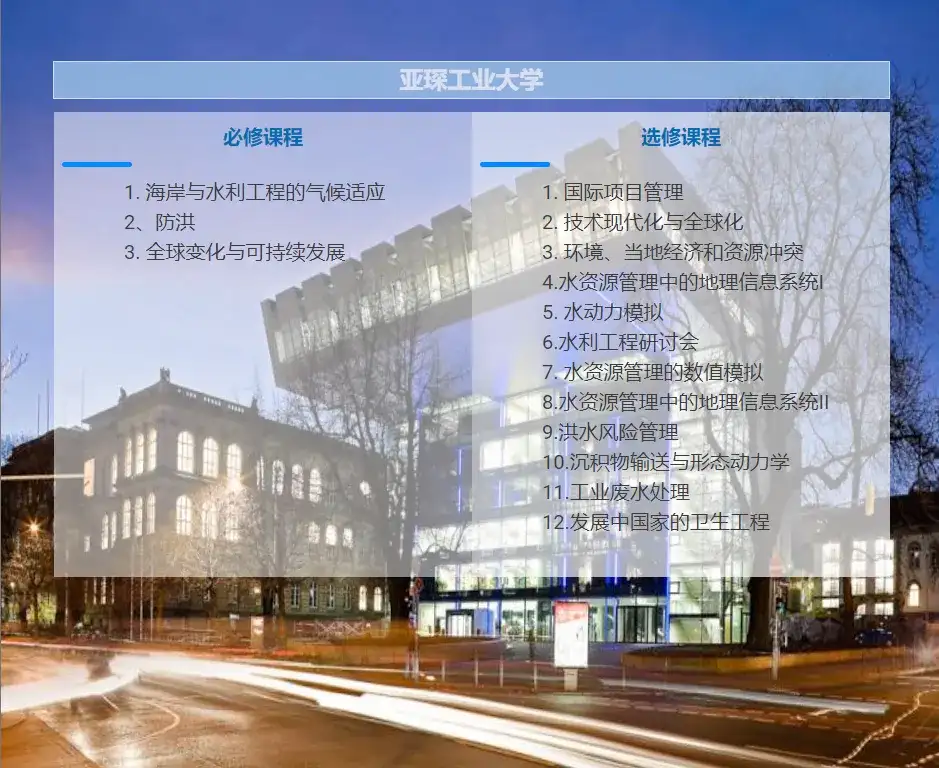 这是一个三所大学联合开设的硕士专业,并且毕业生会被授予联合学位。这三所大学分别是德国亚琛工业大学、印度马德拉斯理工学院、德国德累斯顿工业大学。