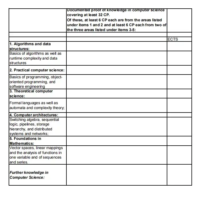 计算机科学知识需要有32学分,其中下面的第一项和第二项各需要至少6学分,第三项到第五项中的两项各需要至少6学分。