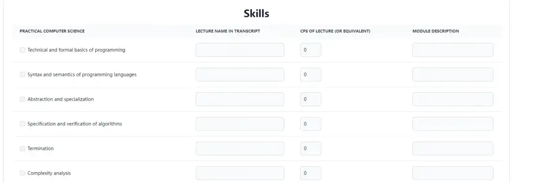 需要在学过的小类前打勾,并且填上课程的名字、学分、描述,这就要求我们做好细致的分类。描述这一栏可以直接复制做好的课程描述这个文件中的内容。