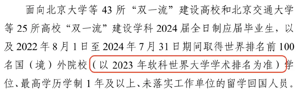 那么各地对于选调生的留学院校要求是怎么样的呢?我们以北京市为例,具体明确要求是以软科排名世界前100的大学为标准。