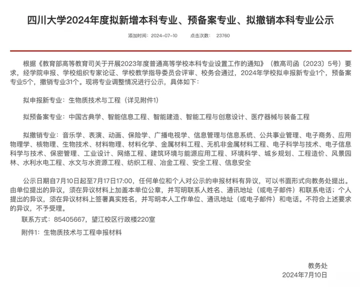 近期高考报志愿可谓是个热门话题,关于专业选择和不同专业未来的发展成为很多同学和家长关注的焦点。而作为985工程大学的国内知名高校四川大学,一则公告引发了大家的强烈关注。